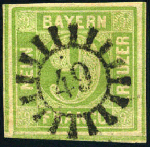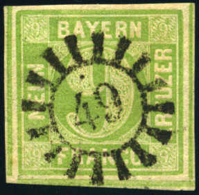 | Zusatzinformationen und Suchstichworte: | 73. AAK Phila GmbH Auktion Auktionstermin: 7. Mai 2022 Los 2125 (D) Altdeutschland Bayern 9 Kr maigrün, li.u. Ecke m. idealem zentr. gMR "49", überrandig Luxus m. einwandfreiem KB Sem BPP Ausruf 25,00 EUR |