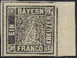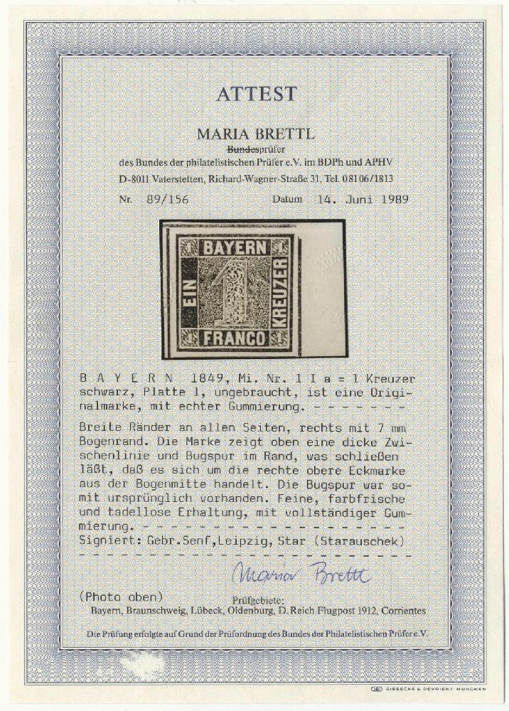 | Zusatzinformationen und Suchstichworte: | 70. Deider Auktion Auktionstermin: 20. Mai 2022 Los 2006 Altdeutschland Bayern 1 Kr. schwarz, Platte 1, ungebrauchtes Luxusstück vom Bogenrand, mit voller Originalgummierung, oftmals sign. und Fotoattest Brettl BPP. Zuschlag 900,00 EUR |