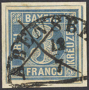 | Zusatzinformationen und Suchstichworte: | 70. Deider Auktion Auktionstermin: 20. Mai 2022 Los 2041 Altdeutschland Bayern 3 Kr. blau, Pl. 1, Luxus-Briefstück mit Stpl. "ABENSBERG" und Federkreuz, Fotobefund Brettl. Ausruf 140,00 EUR |