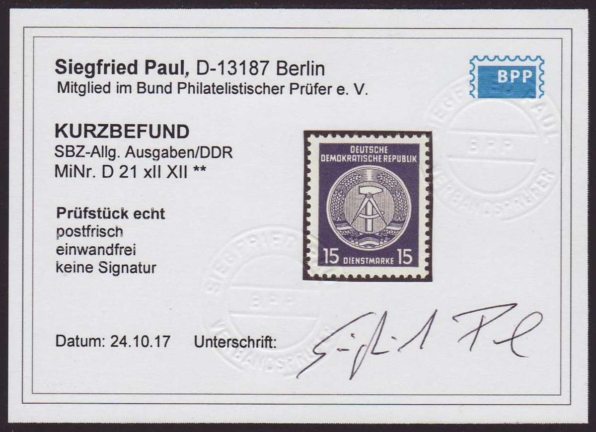 | Prüfgebiet: | DDR Dienstmarken - A Verwaltungspost B |