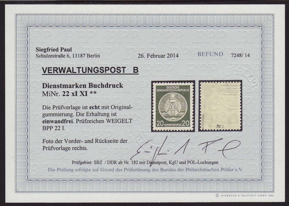 | Prüfgebiet: | DDR Dienstmarken - A Verwaltungspost B |