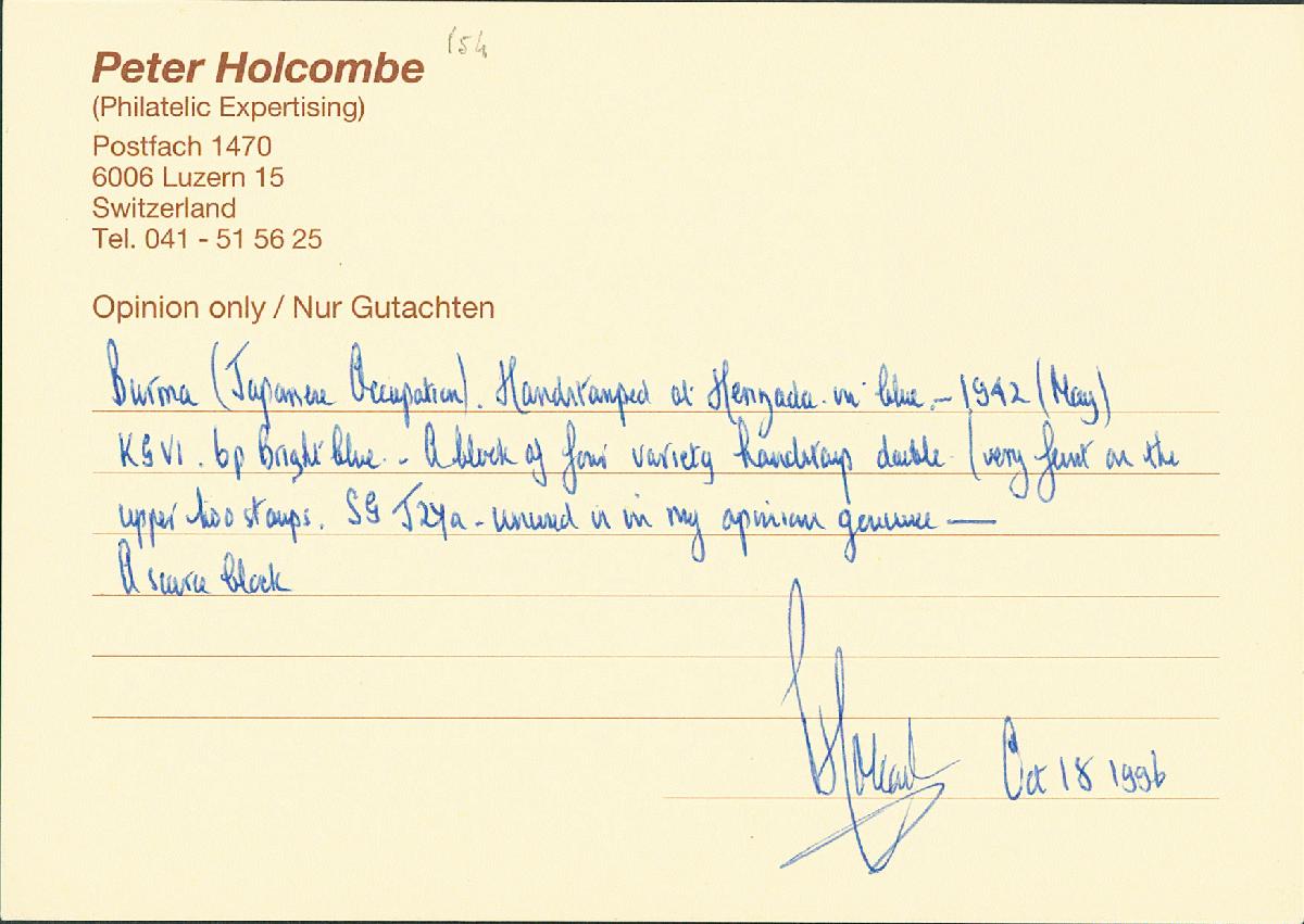 | Prüfgebiet: | Burma - japanische Besetzung |