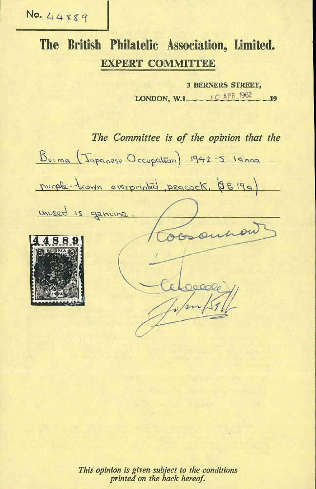 | Prüfgebiet: | Burma - japanische Besetzung |