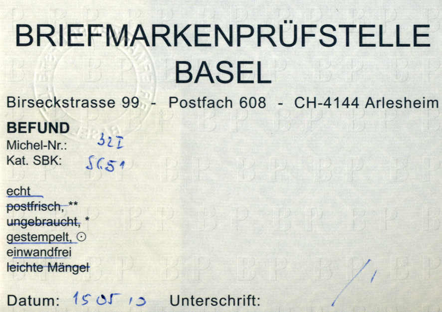 | Prüfer: | Eichele, Martin (BPB (Briefmarkenprüfstelle Basel)) |