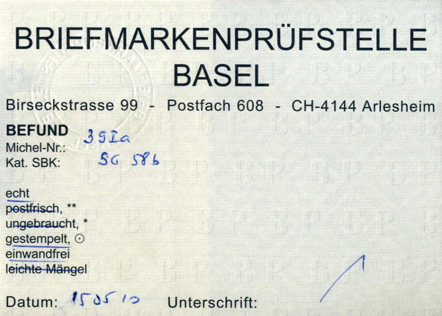 | Prüfer: | Eichele, Martin (BPB (Briefmarkenprüfstelle Basel)) |