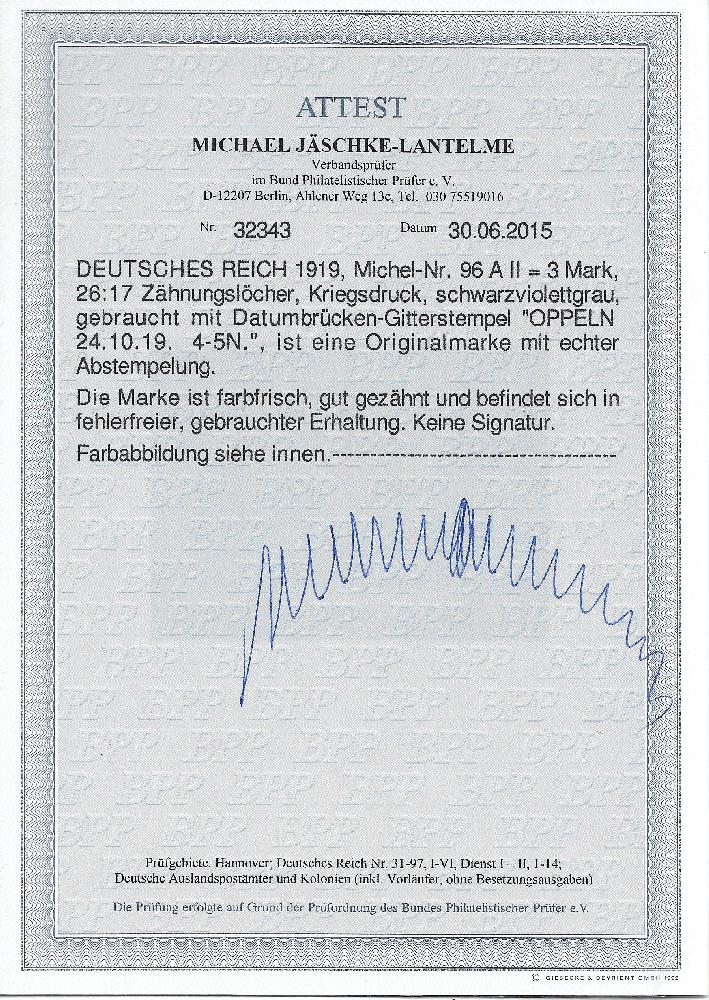 | Prüfer: | Jäschke-Lantelme, Michael (BPP (Bund Philatelistischer Prüfer)) |