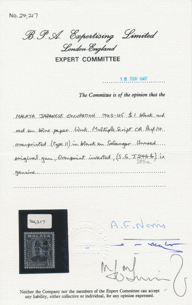 | Prüfgebiet: | Malaiische Staaten - japanische Besetzung |