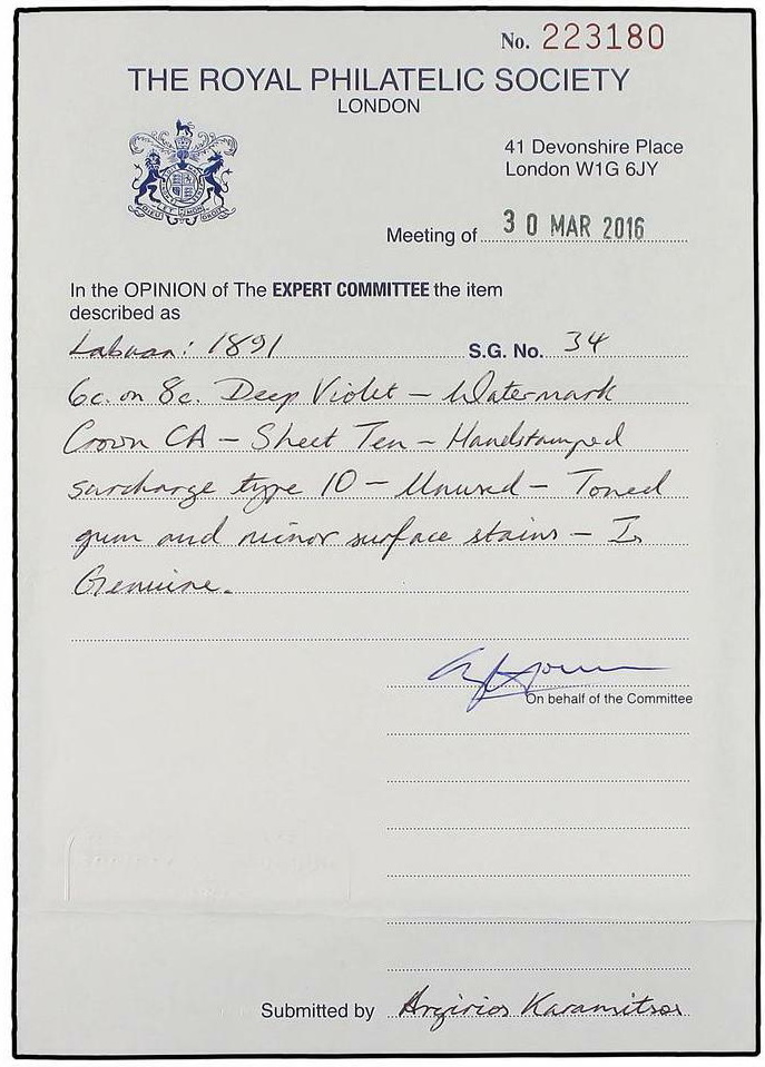 | Prüfer: | RPSL, Royal Philatelic Society (Prüferkommission) |