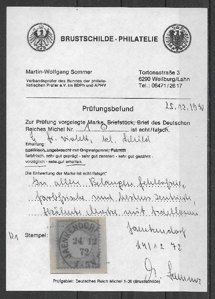 | Prüfer: | Sommer, Martin-Wolfgang (BPP (Bund Philatelistischer Prüfer)) |