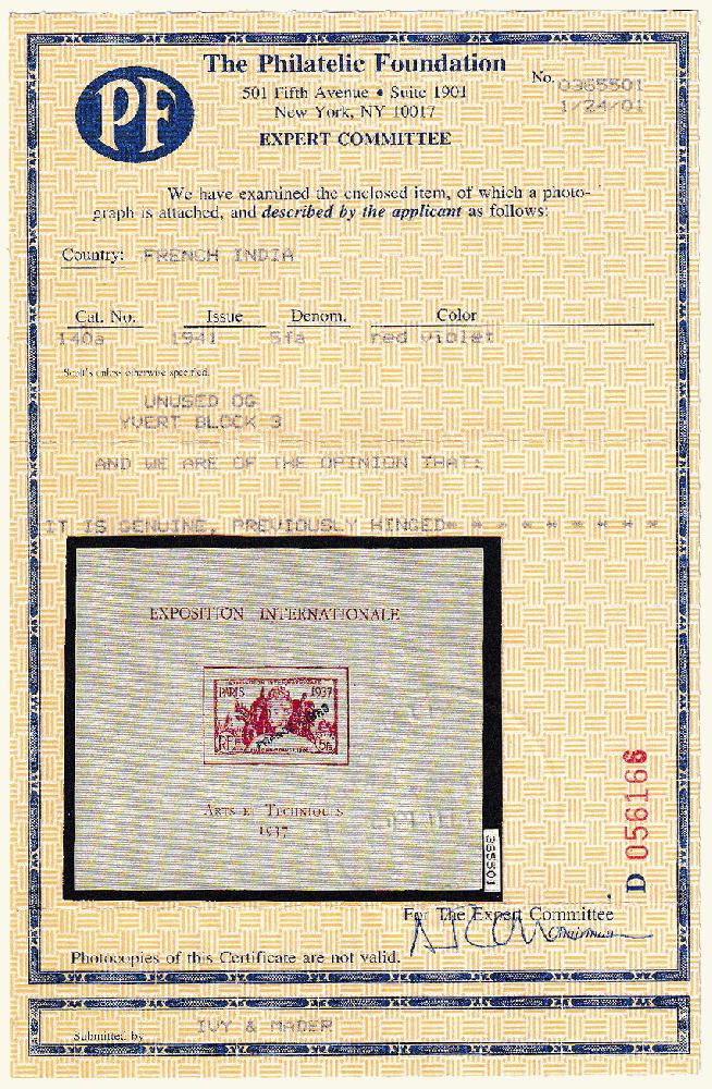 | Prüfer: | The Philatelic Foundation, (Prüferkommission) |