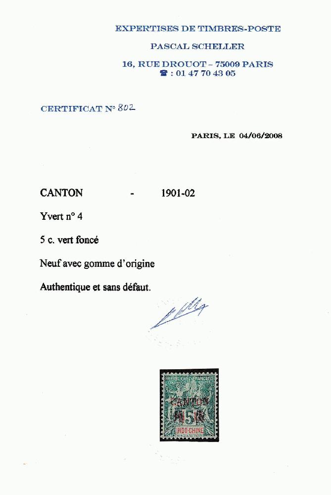 | Zusatzinformationen und Suchstichworte: | Robert A. Siegel - Worldwide Stamps and Postal History Auktionstermin: 21. - 23. Juni 2022 Los 4006 Französisch Indochina Südchina: Canton Frankreich, Post in China, Kanton, 1901,5c grün auf grünlich (2A; Yvert 4). Originalgummi, kleiner Falz, ungewöhnlich gut zentriert, tiefe, kräftige Farbe, Kabinett, ein Kabinettstück des Schlüsselstempel zu der Satz, mit 2008 Scheller und Roumet Zertifikaten, Scott $600,00, Yvert € 750 Ausruf 300,00 USD |