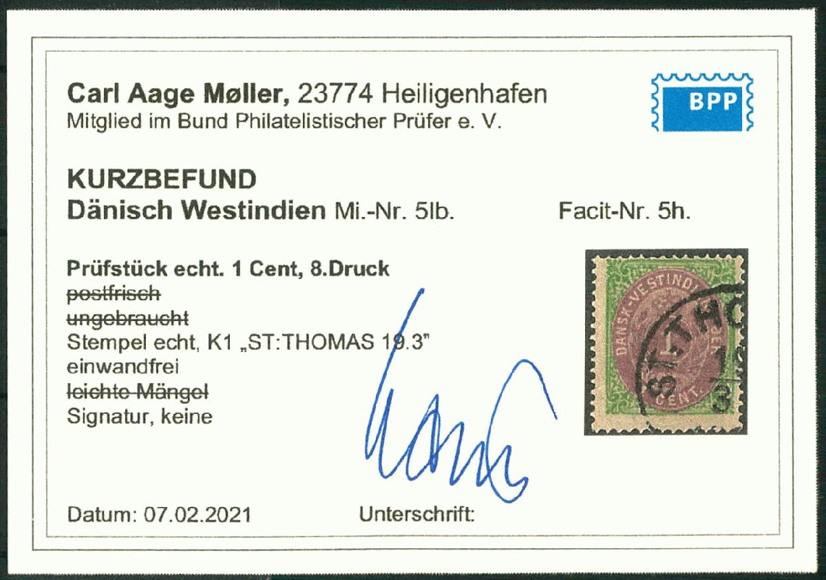 | Zusatzinformationen und Suchstichworte: | 73. AAK Phila GmbH Auktion Auktionstermin: 7. Mai 2022 Los 1091 (D) Dänisch Westindien 1 C grün/braunrot, rundgest. Luxus ST: THOMAS m. einwandfreiem KB Möller BPP Ausruf 20,00 EUR |