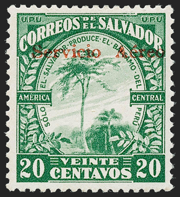 | Zusatzinformationen und Suchstichworte: | Robert A. Siegel - Worldwide Stamps and Postal History Auktionstermin: 21. - 23. Juni 2022 Los 5039 Salvador SALVADOR, 1929,20c tiefgrün, Luftpost, Rotaufdruck (C1a). Originalgummi, kleiner Falz, kräftige Farbe, Pracht, selten mit nur 100 gedruckt mit dem Rotaufdruck, signiert Rendon und mit 1999 P. F. Attest, Scott 850,00, vom Kofferträger W. Venn II Bestand Ausruf 300,00 USD |