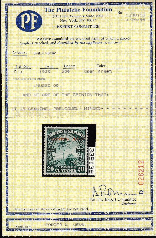| Prüfer: | The Philatelic Foundation, (Prüferkommission) |