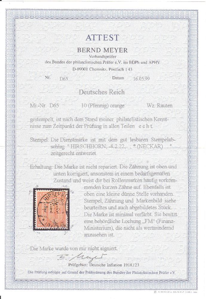 | Prüfer: | Meyer, Bernd (BPP (Bund Philatelistischer Prüfer)) |