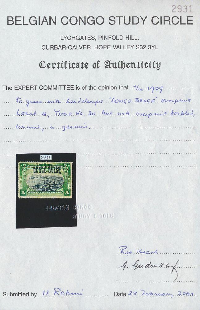 | Zusatzinformationen und Suchstichworte: | 171. Van Looy Auktion Auktionstermin: 15. - 18. Juni 2022 Los 1993 Belgisch-Kongo "N° 30L4-Cu "5c. groen" met dubbel lokale opdruk "CONGO BELGE" type 4 met certificaat, zm" Ausruf 25,00 EUR |