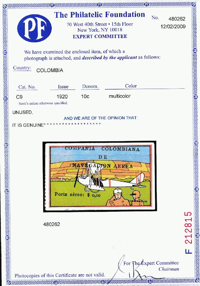 | Zusatzinformationen und Suchstichworte: | Robert A. Siegel - Worldwide Stamps and Postal History Auktionstermin: 21. - 23. Juni 2022 Los 4752 Scadta Kolumbien, 1920, 10c "SCADTA", flach im Ruhezustand und Pilot Vordergrund (C9). Ohne Gummi, wie verausgabt, wunderbar große und gleichmäßig gerandet, kräftige Farben Kabinett. Ein Kabinettstück von dieser Luftpost mit nur 41 verzeichnet. Signiert Bloch. Mit 2008 Scheller und 2009 P. F. Zertifikaten. Scott $4,500,00. vom Kofferträger W. Venn II Bestand Ausruf 1.500,00 USD |
