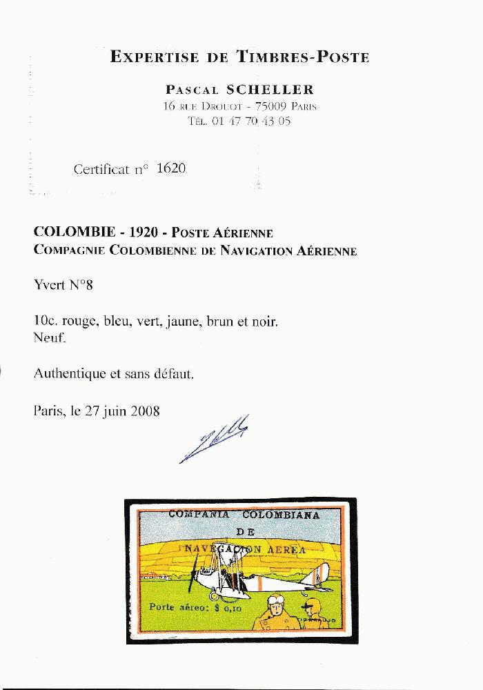 | Zusatzinformationen und Suchstichworte: | Robert A. Siegel - Worldwide Stamps and Postal History Auktionstermin: 21. - 23. Juni 2022 Los 4752 Scadta Kolumbien, 1920, 10c "SCADTA", flach im Ruhezustand und Pilot Vordergrund (C9). Ohne Gummi, wie verausgabt, wunderbar große und gleichmäßig gerandet, kräftige Farben Kabinett. Ein Kabinettstück von dieser Luftpost mit nur 41 verzeichnet. Signiert Bloch. Mit 2008 Scheller und 2009 P. F. Zertifikaten. Scott $4,500,00. vom Kofferträger W. Venn II Bestand Ausruf 1.500,00 USD |