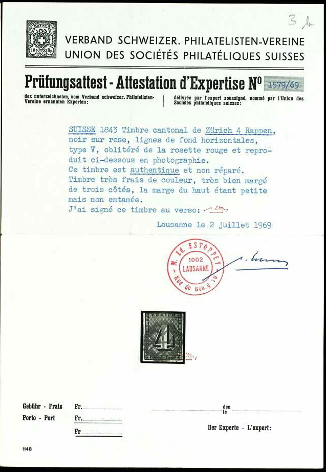 | Prüfer: | Estoppey, Maurice E (SBPV / ASEP (Schweizerischer Briefmarken-Prüfer-Verband)) |