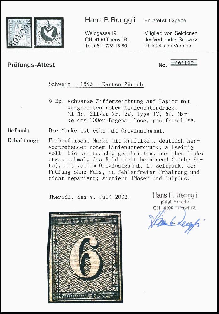 | Zusatzinformationen und Suchstichworte: | Dr. Reinhard Fischer 186. Auktion Auktionstermin: 18. - 21. Mai 2022 Los 4966 Schweiz Kanton Zürich 6 Rp. schwarz/dunkelbräunlichrot, Linienunterdruck waagerecht, Type IV, Feld 69, voll bis breitrandiger Schnitt - oben links minimal tangierend das Markenbild aber nicht berührend, postfrisch - in dieser Erhaltung selten, tadellos, gepr. Moser und Fulpius, Fotoattest Renggli, in dieser Erhaltung kaum einmal angeboten! Zuschlag 1.000,00 EUR |