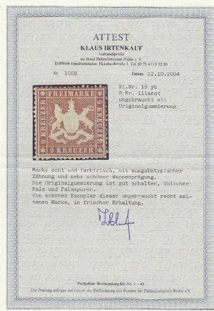 | Prüfer: | Irtenkauf, Klaus (BPP (Bund Philatelistischer Prüfer)) |