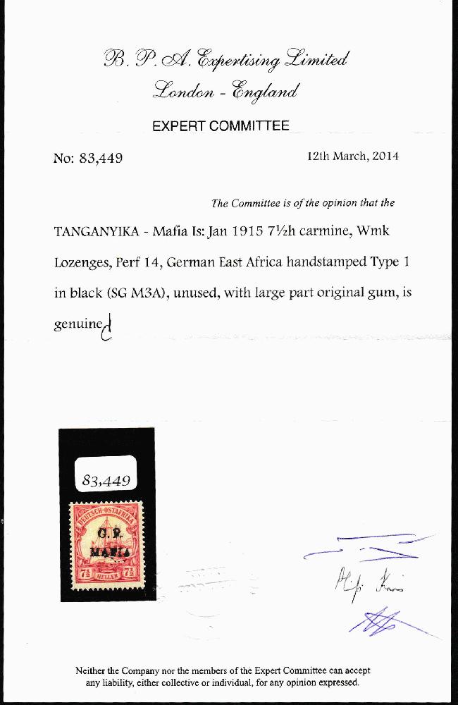 | Prüfgebiet: | Deutsche Kolonien Deutsch-Ostafrika Britische Besetzung |