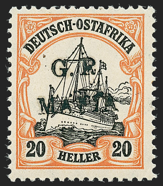 | Zusatzinformationen und Suchstichworte: | Robert A. Siegel - Worldwide Stamps and Postal History Auktionstermin: 21. - 23. Juni 2022 Los 4654 Deutsche Kolonien Ostafrika Brit. Besetzung Deutsch-Ostafrika, mafios Insel, 1915,20h Orange und schwarz auf gelb, Schwarzaufdruck (NL13; SG M5A). Postfrisch kräftig und frische Farben, Pracht, besonders selten in postfrischer Erhaltung, mit 2008 Brandon Attest, katalogisiert als gefalzt, Scott $975,00, SG £950 Ausruf 500,00 USD |