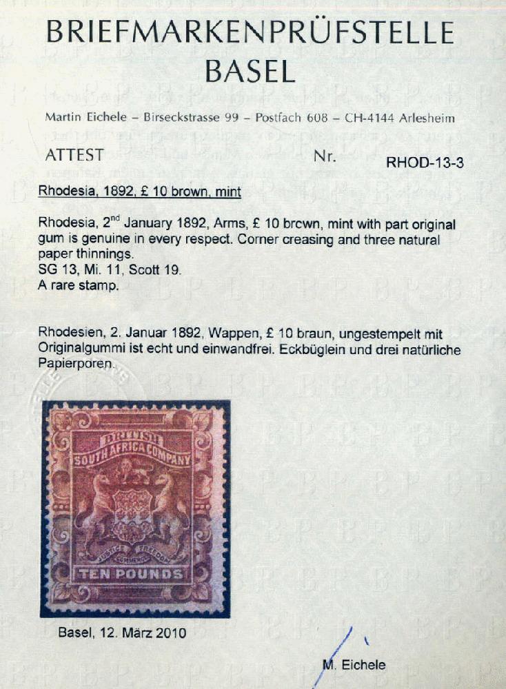 | Zusatzinformationen und Suchstichworte: | 73. AAK Phila GmbH Auktion Auktionstermin: 7. Mai 2022 Los 1052 (D) Britische Südafrika Gesellschaft 10 Pfund braun, ungebr. Pracht m. kl. Einschränkungen m. entspr. Attest BPSB, Katalogpreis: 4500,- EUR Ausruf 450,00 EUR |