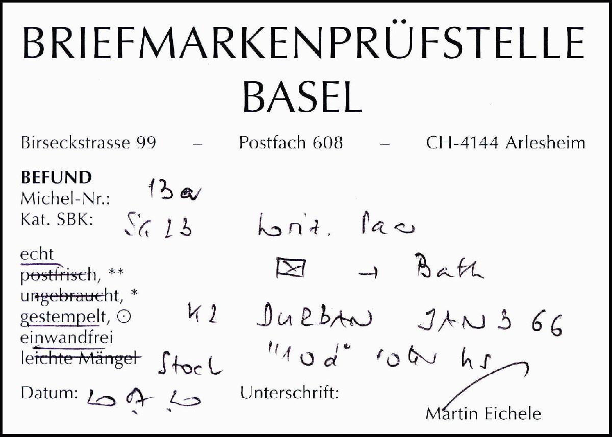 | Prüfer: | Eichele, Martin (BPB (Briefmarkenprüfstelle Basel)) |