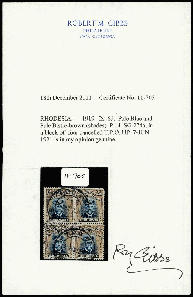 | Zusatzinformationen und Suchstichworte: | Stanley Gibbons - The David Spivack Admiral Collection - Part 1 Auktionstermin: 6. Juli 2022 Los 289 Rhodesien 1918-21 2/6d Head Die IIIB, perf 14, toned paper. Fine used block of four, Variant B in steel-blue and greyish olive-brown, TPO UP CDSs of 7 JUN 21. Gibbs Certificate (2011). SG 274a, AH 8(B) - Est £150-£180 Ausruf 120,00 GBP |