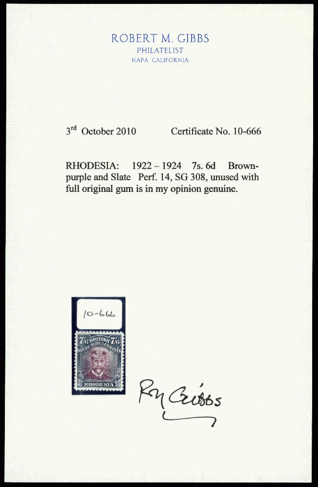| Zusatzinformationen und Suchstichworte: | Stanley Gibbons - The David Spivack Admiral Collection - Part 1 Auktionstermin: 6. Juli 2022 Los 441 Rhodesien 1922-3 7/6d Head Die IIIB, perf 14, white paper. Unmounted o.g. example in maroon and indigo, Gibbs Certificate (2010). SG 308, AH 6 - Est £140-£160 Ausruf 110,00 GBP |
