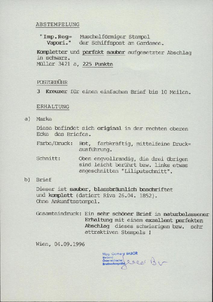 | Prüfer: | Babor, Gerhard (VÖB (Verband Österreichischer Briefmarkenprüfer)) |