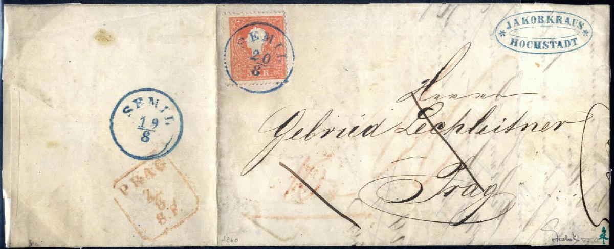| Zusatzinformationen und Suchstichworte: | 73. Viennafil Live-Auktion Auktionstermin: 31. Mai - 3. Juni 2022 Los 2063 Österreich Abstempelungen Böhmen "Semlin" Brief vom 19.8. nach Prag frankiert mit Kaiserkopf nach links, 5 Kr. rot Type II für das 10 Kr. Briefporto der 1. Gewichts- und 2. Entfernungsstufe, da unterfrankiert mit 10 Kr. Nachtaxe belegt, ex Provera, Attest Ferchenbauer, ANK 13 II Zuschlag 300,00 EUR |