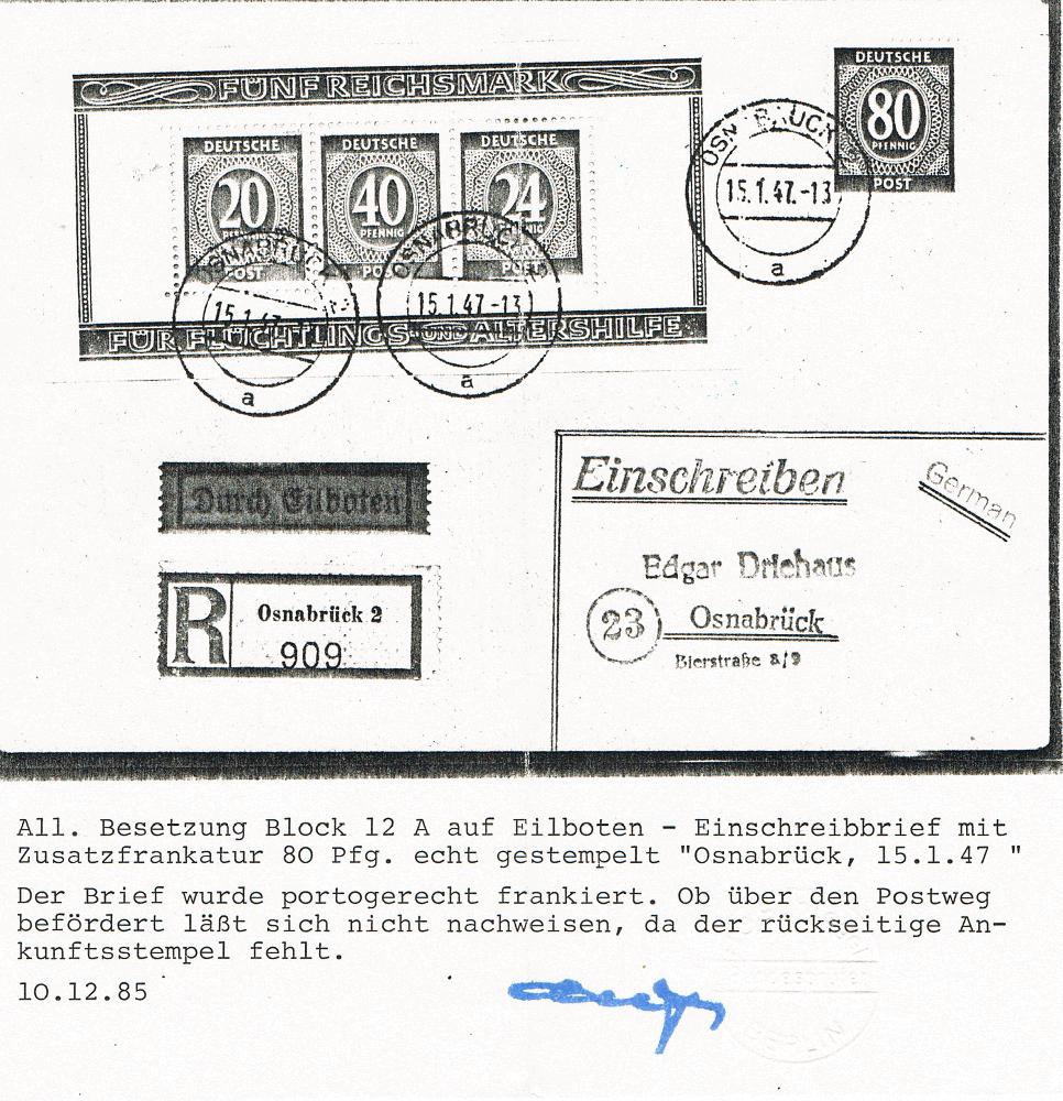 | Prüfgebiet: | Alliierte Besetzung Gemeinschaftsausgaben Blocks |