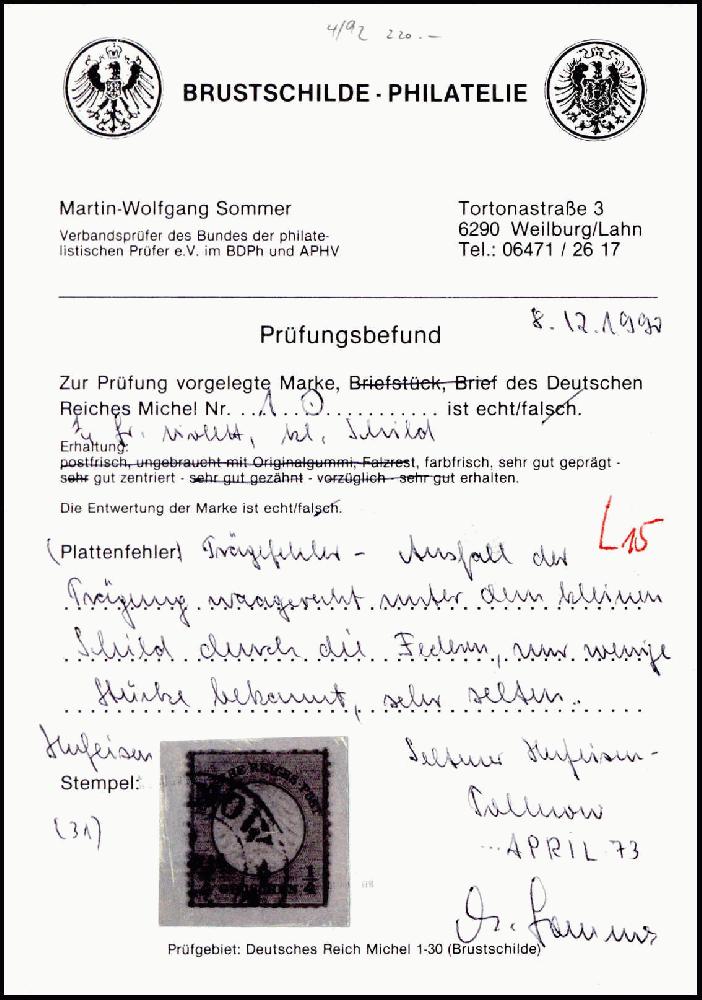 | Prüfer: | Sommer, Martin-Wolfgang (BPP (Bund Philatelistischer Prüfer)) |