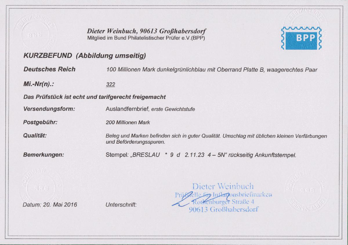 | Prüfer: | Weinbuch, Dieter (BPP (Bund Philatelistischer Prüfer)) |