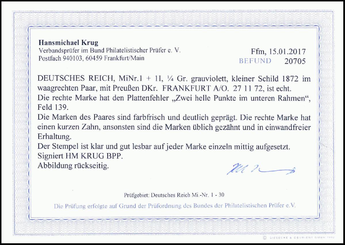 | Prüfgebiet: | Deutsches Reich 1871 - 1918 (Mi-Nr. 1 - 106) |