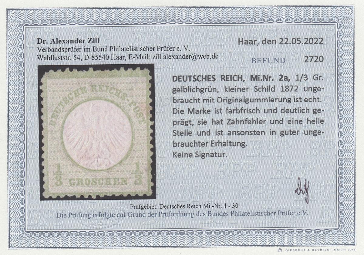 | Prüfer: | Zill, Alexander (BPP (Bund Philatelistischer Prüfer)) |