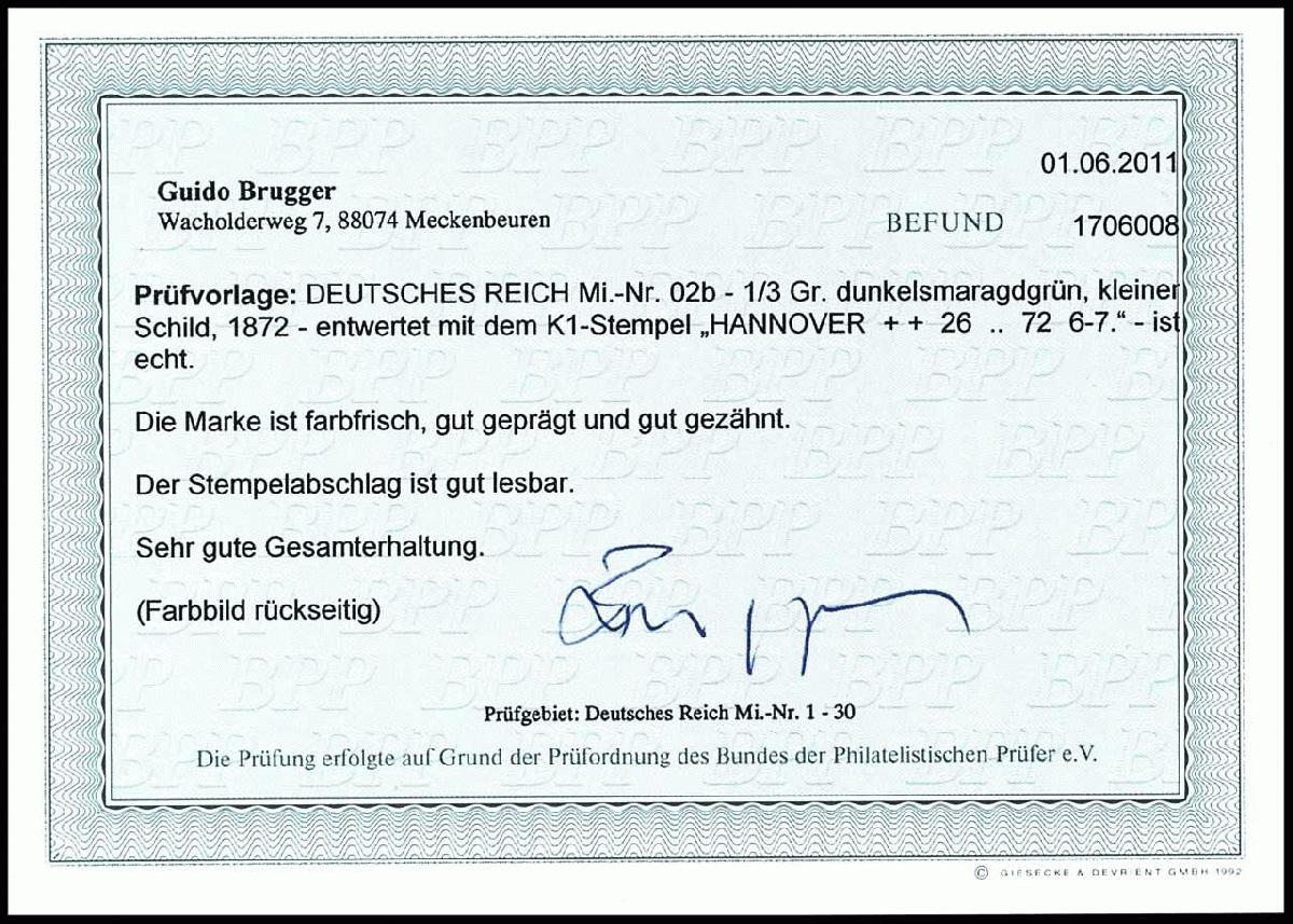 | Prüfgebiet: | Deutsches Reich 1871 - 1918 (Mi-Nr. 1 - 106) |