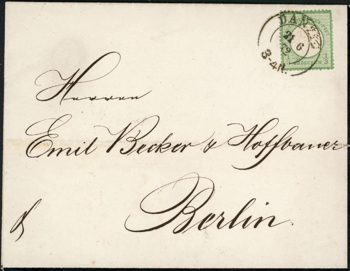 | Zusatzinformationen und Suchstichworte: | Klüttermann - 4. Auktion Auktionstermin: 28. Juli - 5. August 2022 Los 1749 Deutsches Reich, 1872 Kleiner Brustschild1/3 Gr. dunkelsmaragdgrün als EF auf Kab-Trauerdrucksache mit K2 DANZIG 21 6 72, FB Jäschke-L. Katalogwert: 350 Ausruf 130,00 EUR |