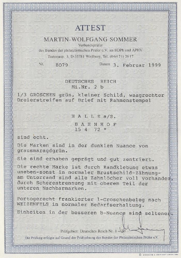 | Prüfer: | Sommer, Martin-Wolfgang (BPP (Bund Philatelistischer Prüfer)) |
