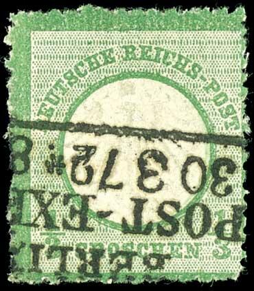 | Zusatzinformationen und Suchstichworte: | Dr. Reinhard Fischer 186. Auktion Auktionstermin: 18. - 21. Mai 2022 Los 1620 Deutsches Reich, 1872 Kleiner Brustschild 1/3 Groschen kleiner Schild, dunkelsmaragdgrün, Besonderheit "durchstichartig rau gezähnt", entwertet mit preußischem Ra3 "BERLIN POST EXPED 30 3 72", Fotobefund Brugger BPP: "Einwandfrei. Sehr gute Gesamterhaltung.", Mi. 170.-++ Zuschlag 60,00 EUR |