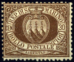 | Zusatzinformationen und Suchstichworte: | 74. AAK Phila GmbH Liquidationsauktion Auktionstermin: 17. Juli 2022 Los 893 (D) San Marino 30 C braun, postfr. Pracht m. vollem Orig´gummi, tief gepr. Georg Bühler u. m. einwandfreiem Attest BPSB, RR Ausruf 300,00 EUR |