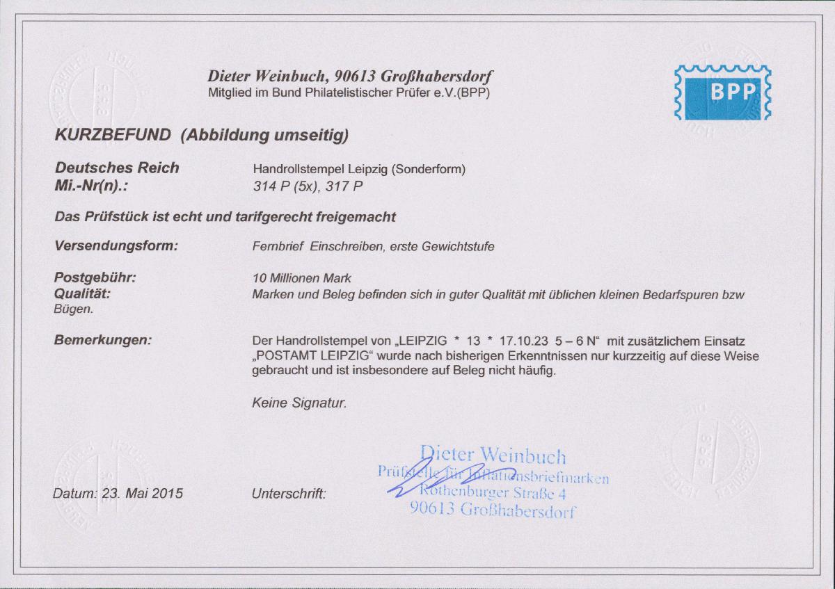 | Prüfgebiet: | Deutsches Reich 1919 - 1923 (Mi-Nr. 107 - 343) |