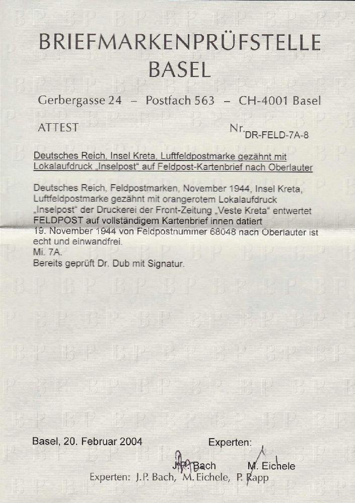 | Prüfer: | Bach, Jean-Paul, und Eichele, Martin (BPB (Briefmarkenprüfstelle Basel)) |