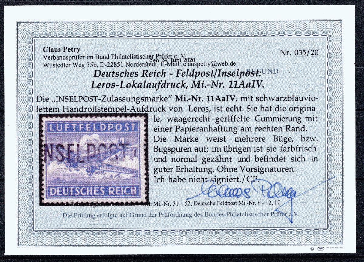 | Prüfer: | Petry, Claus (BPP (Bund Philatelistischer Prüfer)) |