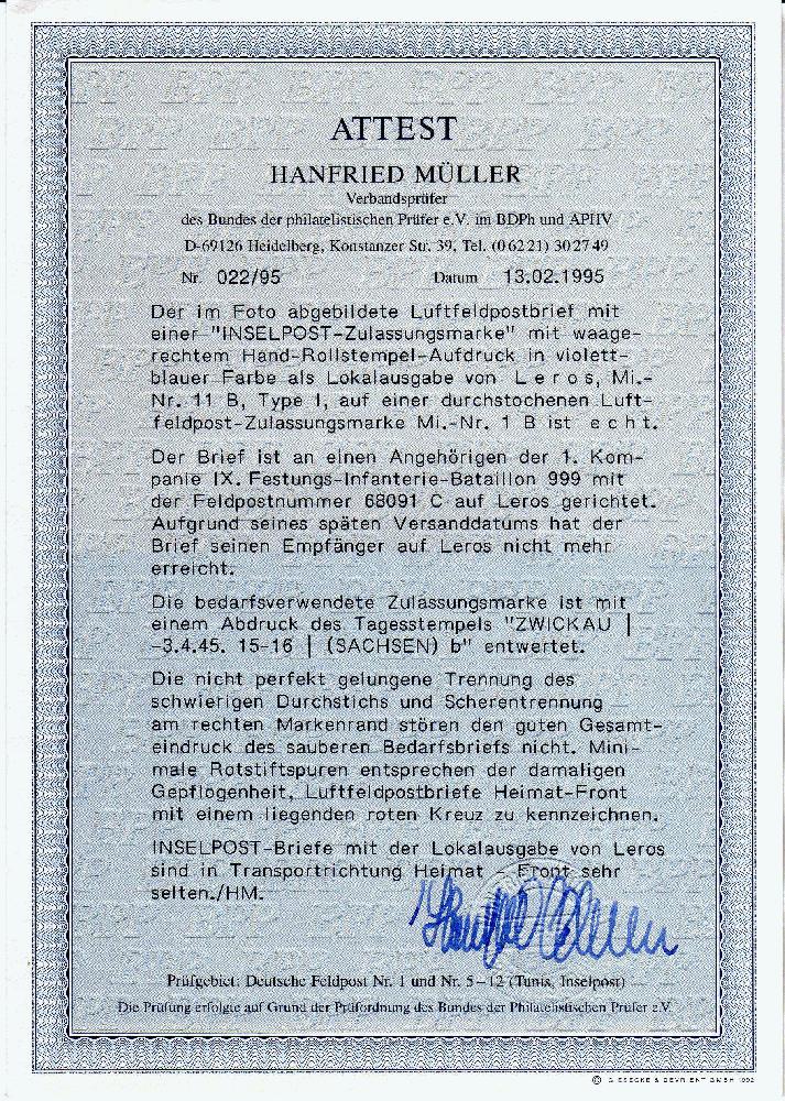 | Prüfer: | Müller, Hanfried (BPP (Bund Philatelistischer Prüfer)) |