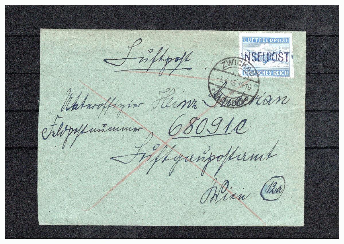 | Zusatzinformationen und Suchstichworte: | Georg Bühler 28. Fern-Auktion Auktionstermin: 28. April 2022 Los 3489 Feldpost II Wk Lp-Feldp.-Brief Heimat-Front vom 3.4.45 Zwickau nach Wien, laut ausführl. Attest Müller "durch sehr späte Verwendung Empfänger auf Leros nicht mehr erreicht", sehr selt. Beleg Ausruf 750,00 EUR |
