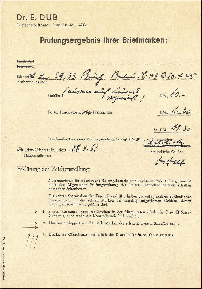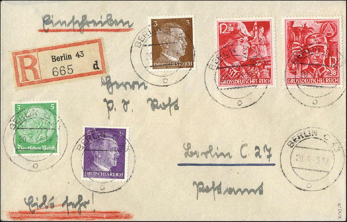 | Zusatzinformationen und Suchstichworte: | Götz 398. Auktion Auktionstermin: 22. - 23. Juni 2022 Los 3182 Deutsches Reich, 1933/45 Drittes Reich SA/SS 1945 + Zusatzfrankatur auf R-Brief mit Ankunftsstempel. 2 Farbfotoatteste Schlegel. Im Attest: "Marken u. Poststempel sind echt, die Stempelfarbe erscheint zeitgerecht. Eine tatsächliche Beförderung kann nicht bestätigt werden. Die Qualität der Marken ist einwandfrei". Des Weiteren geprüft Dr. Dub Zuschlag 650,00 EUR |