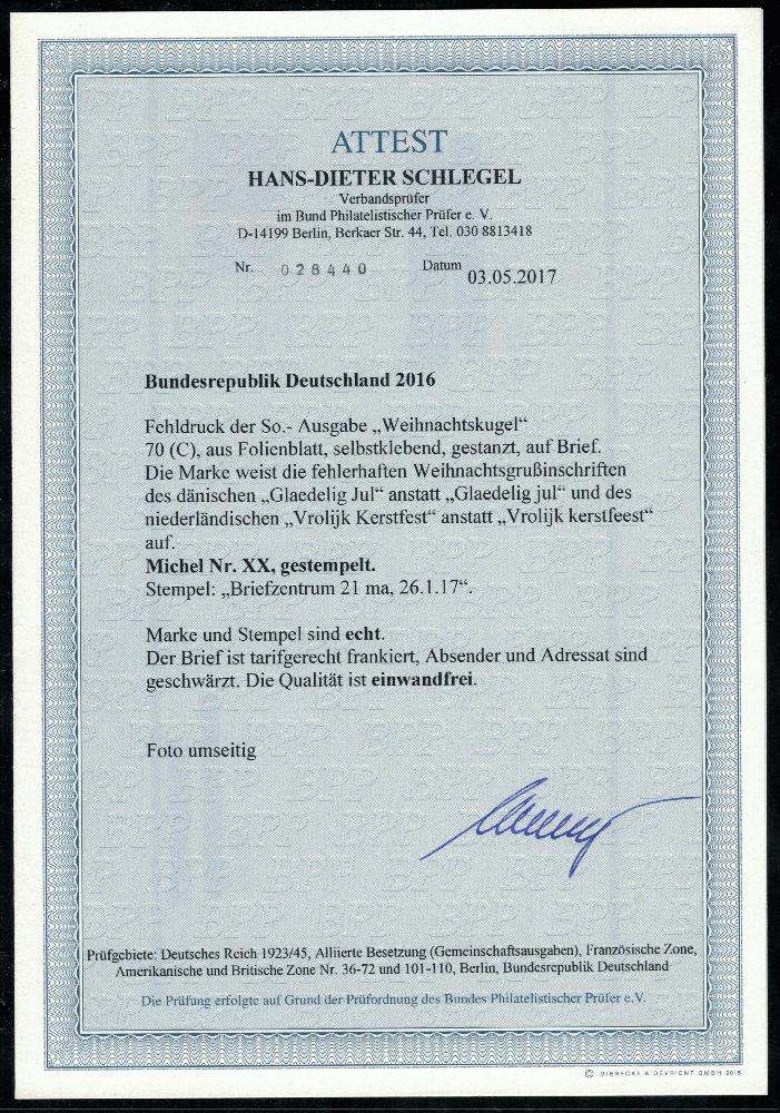 | Prüfer: | Schlegel, Hans-Dieter (BPP (Bund Philatelistischer Prüfer)) |